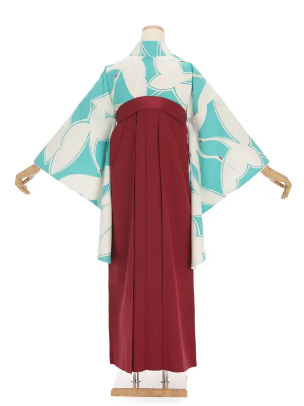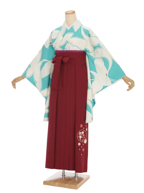 卒業袴レンタルh351 水色地 鶴 x エンジ袴