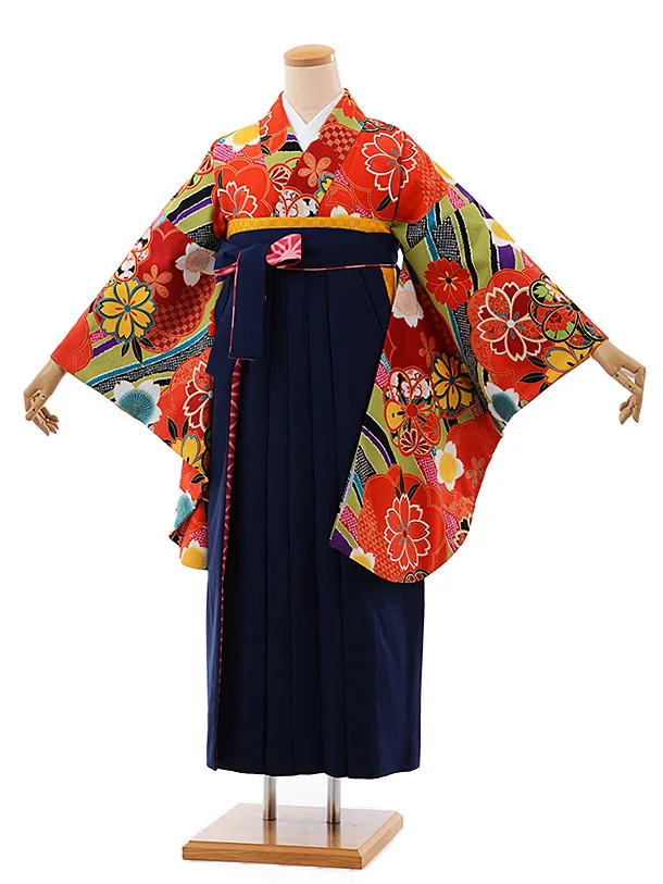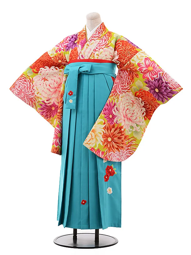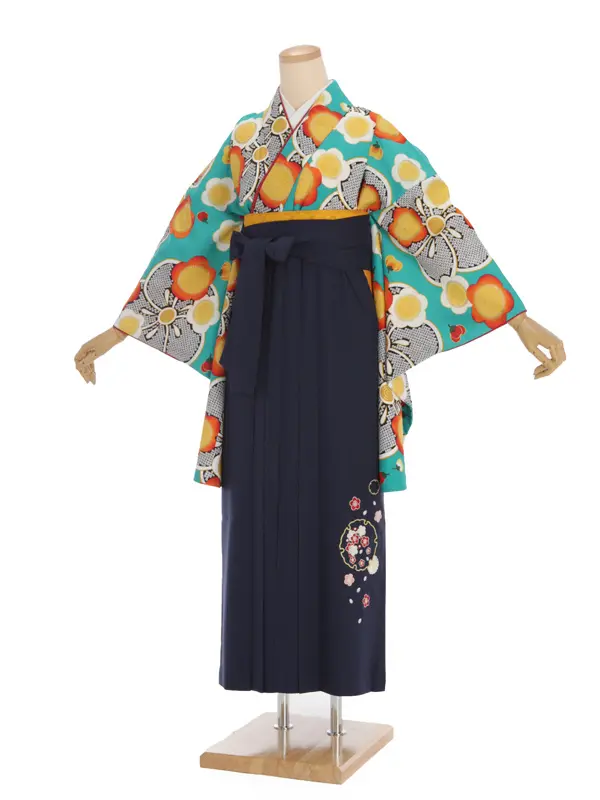 卒業袴レンタルh352 エメラルドグリーン 梅 x 紺袴