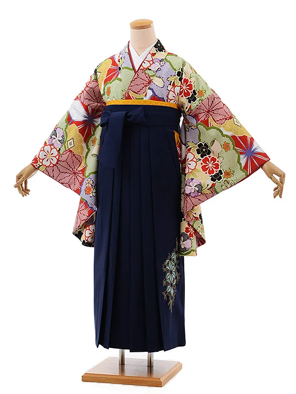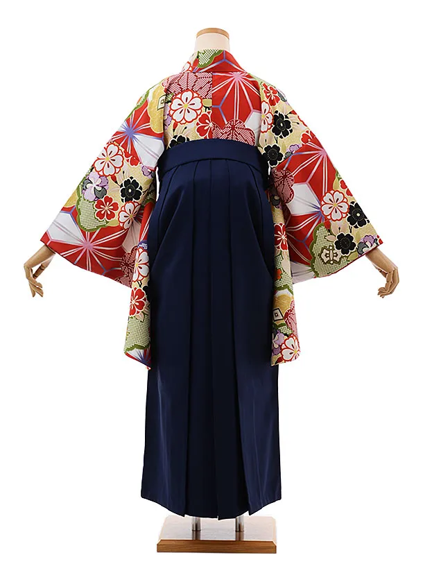 卒業式袴レンタルh364赤地麻の葉桜×紺袴