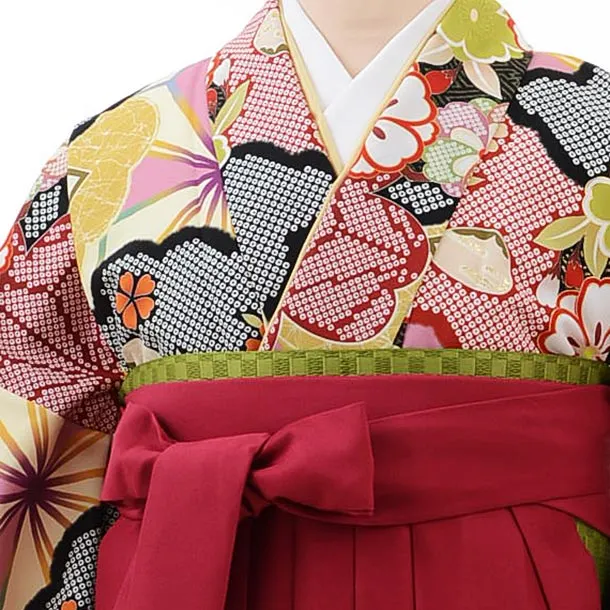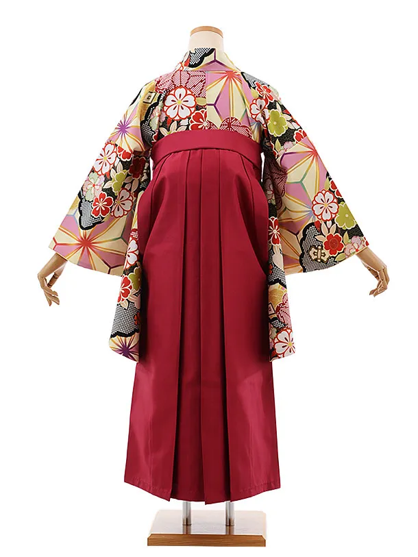 卒業式袴レンタルh370ピンククリーム麻の葉桜×ローズ袴