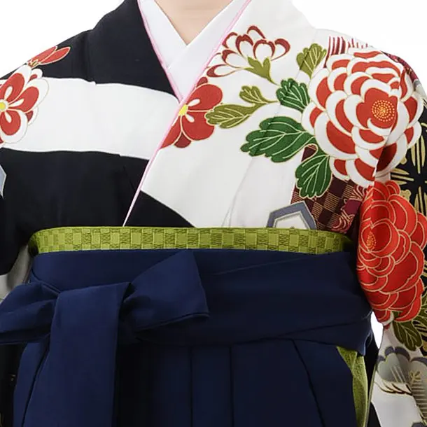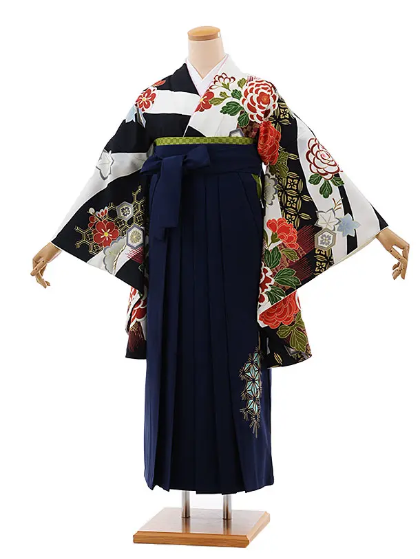 卒業式袴レンタルh371黒白ぼたんx紺袴