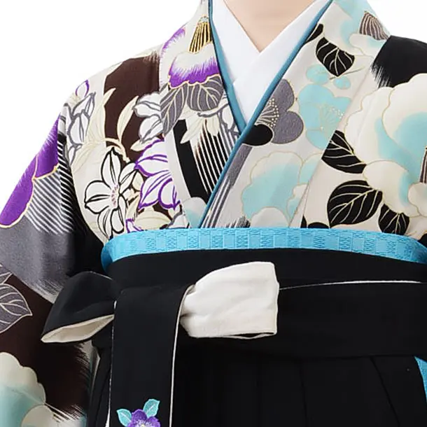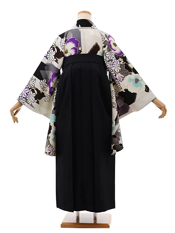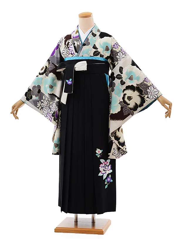 卒業式袴レンタルh377紅一点クリーム椿×黒袴