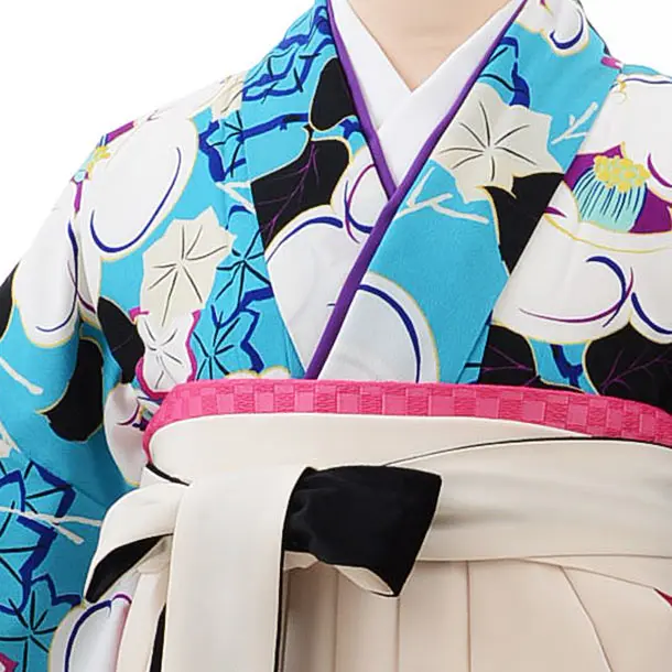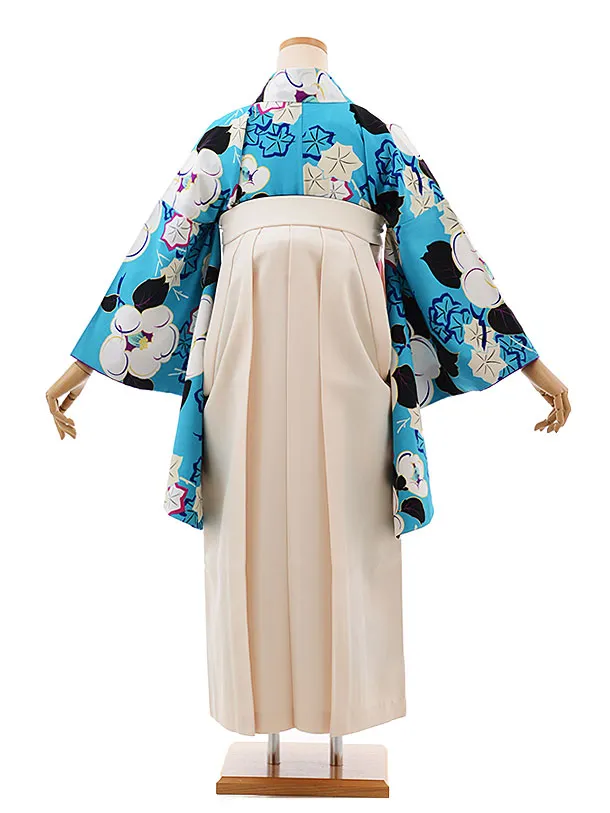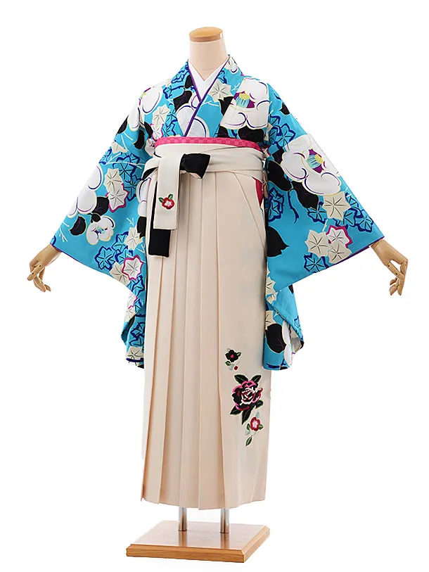 卒業式袴レンタルh380紅一点ターコイズ昭和椿×白袴