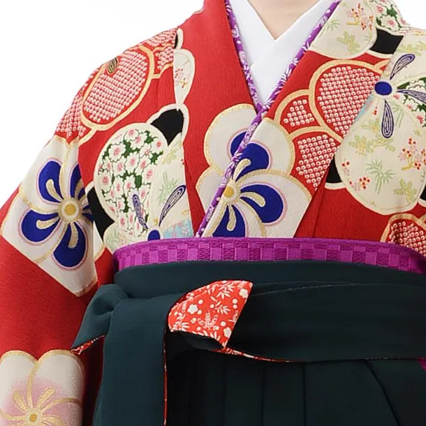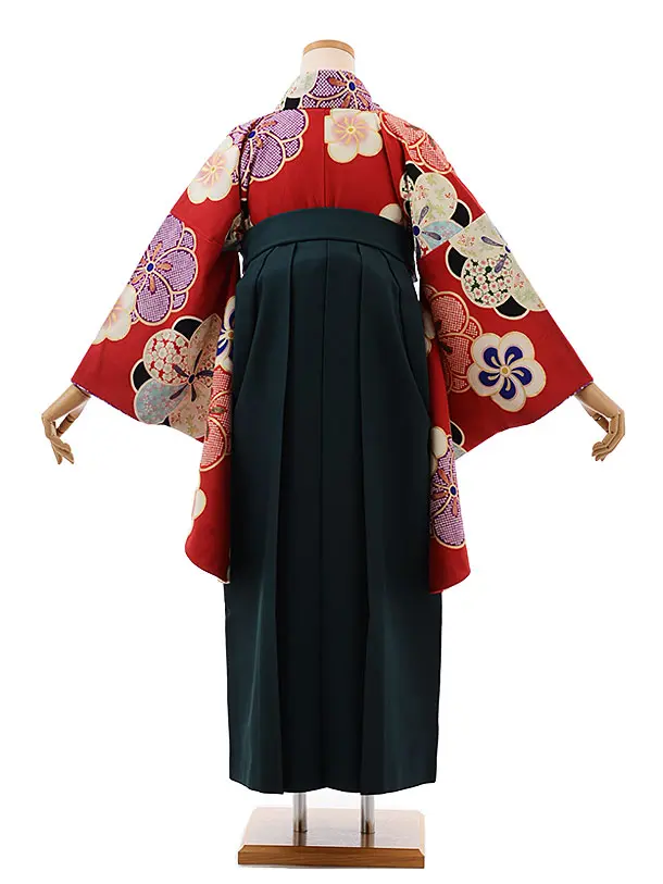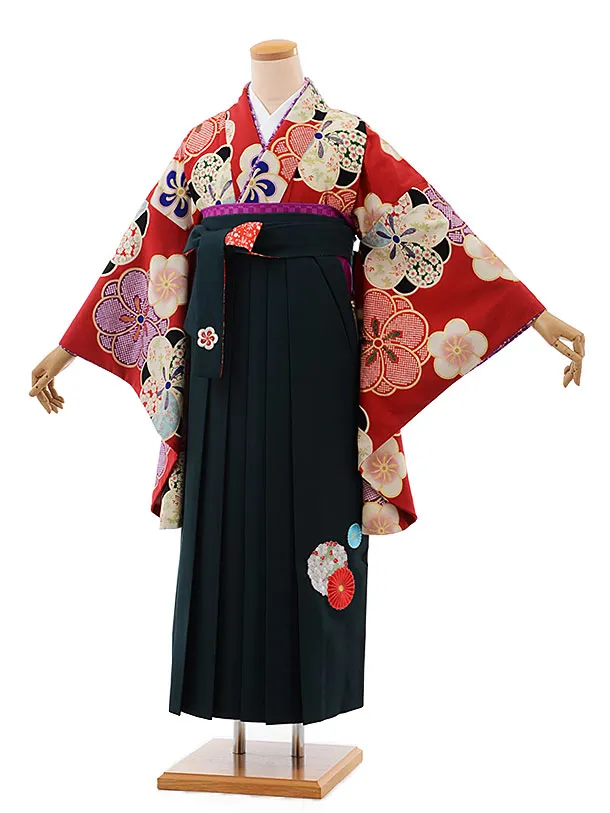 卒業式袴レンタルh398はいばら赤地ねじり梅×グリーン袴