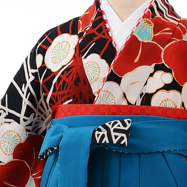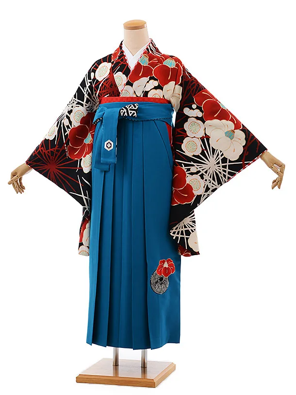 卒業式袴レンタルh405JAPANSTYLE黒地椿に松