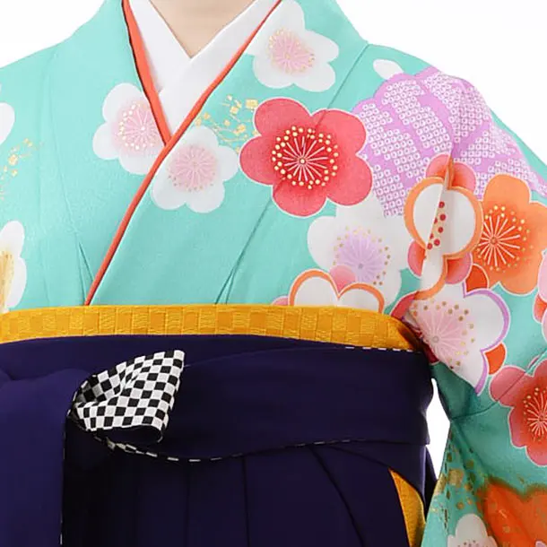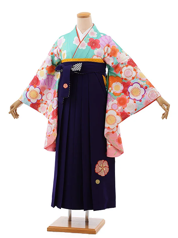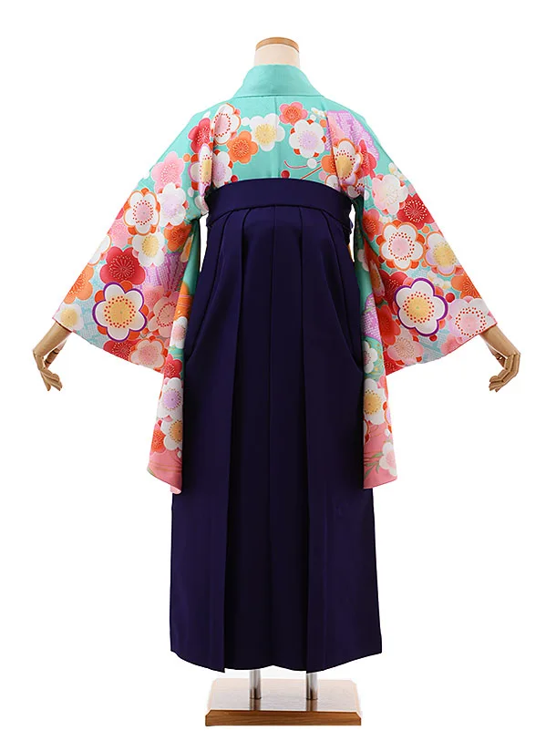 卒業式袴レンタルh411ミントグリーン梅×紫袴