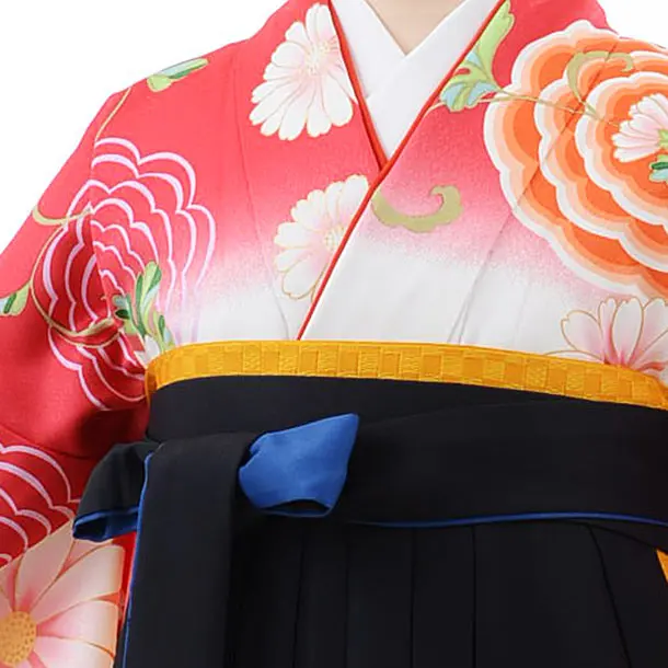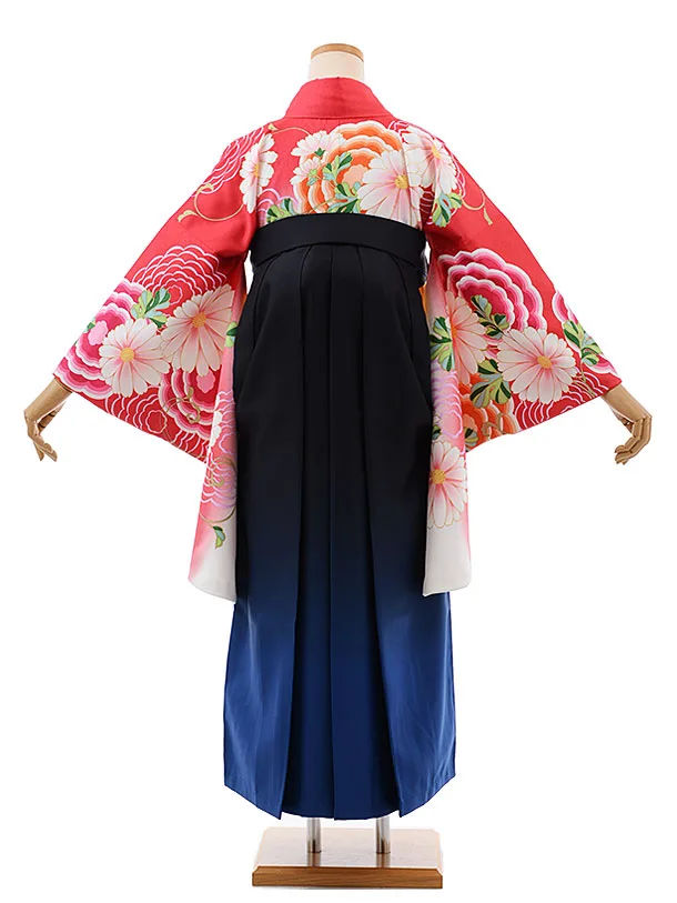 卒業式袴レンタルh416白ローズぼかし花×紺ぼかし袴
