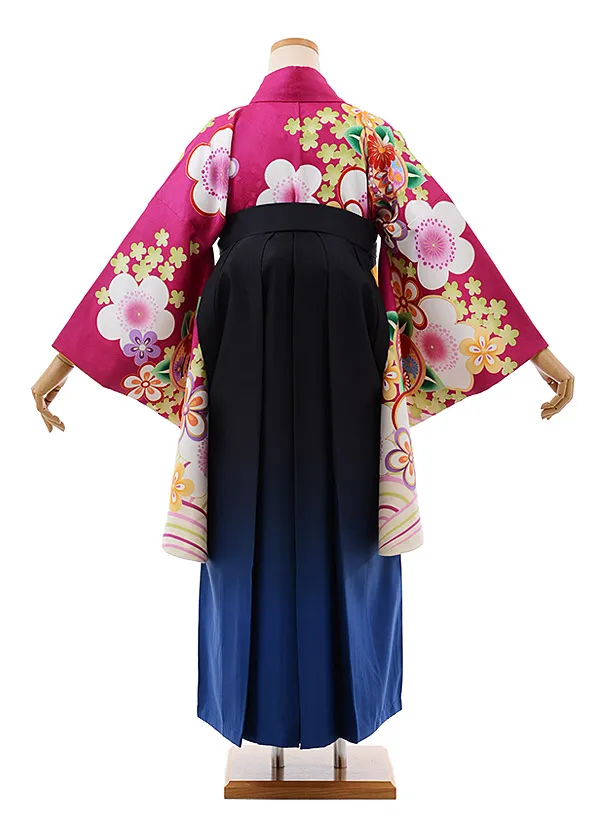 卒業式袴レンタルh419赤紫梅×紺ぼかし袴×紺ぼかし袴