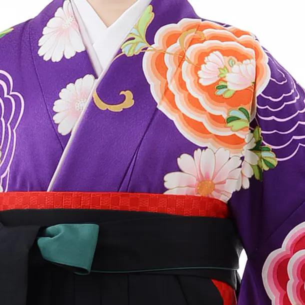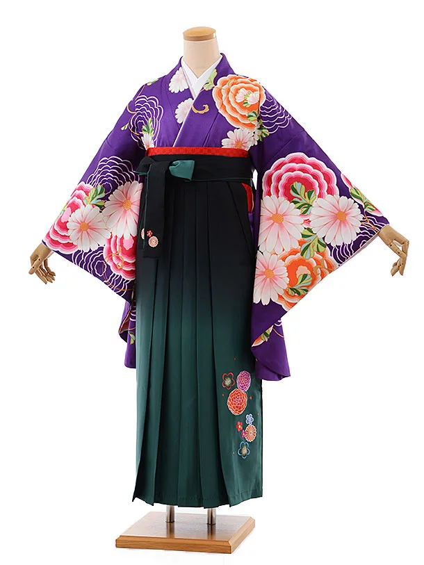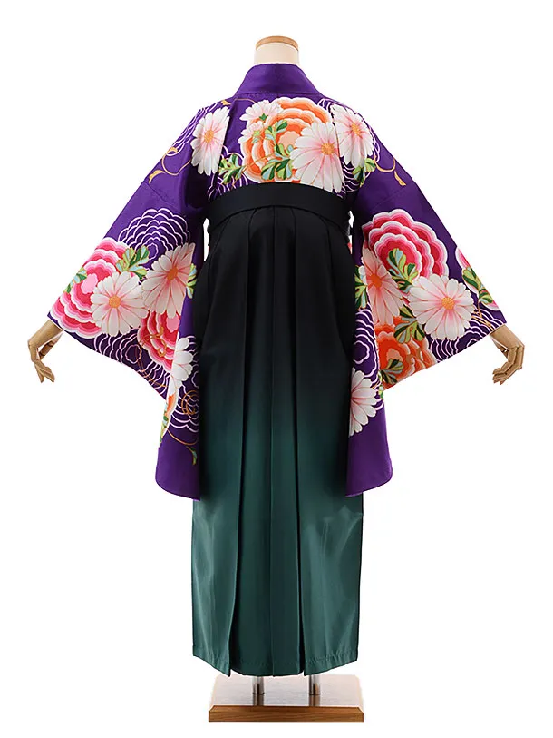 卒業式袴レンタルh429パープル地花×グリーンぼかし袴