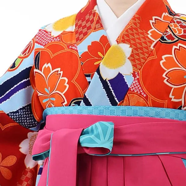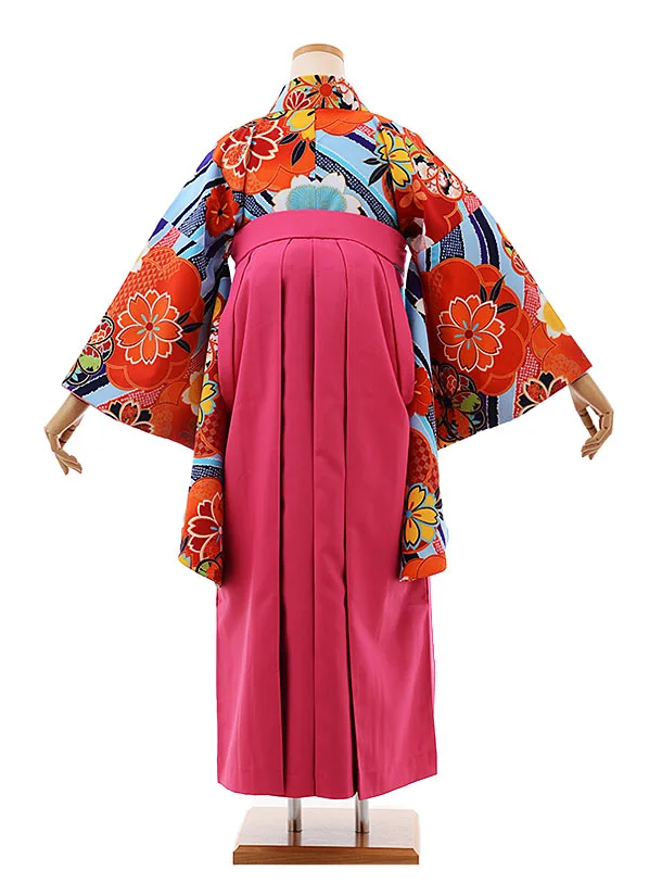 卒業式袴レンタルh434水色地梅桜xピンク袴