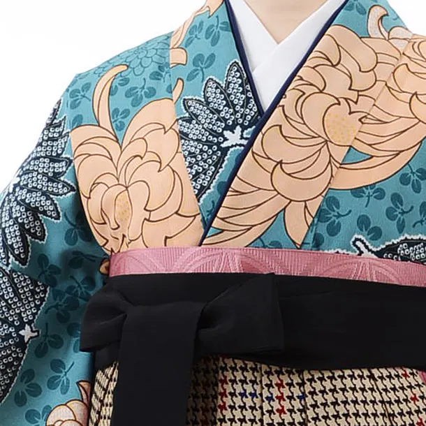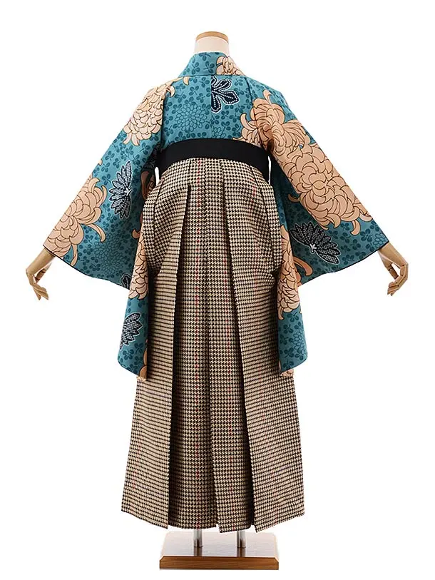 卒業式袴レンタルh444ラフィネモカ大菊ブルー×千鳥袴