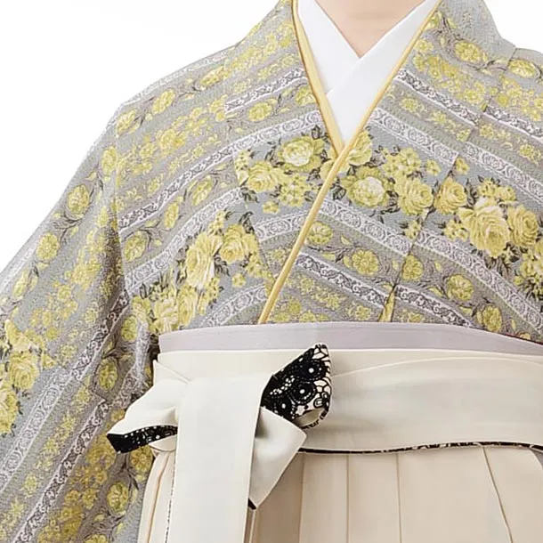 卒業式袴レンタルh448ラフィネモカゴブラングレー黄色