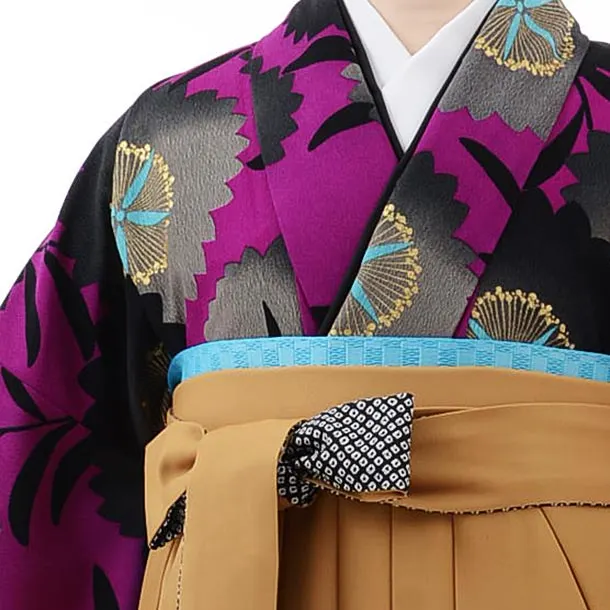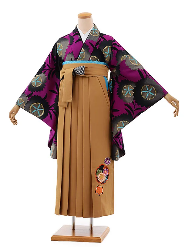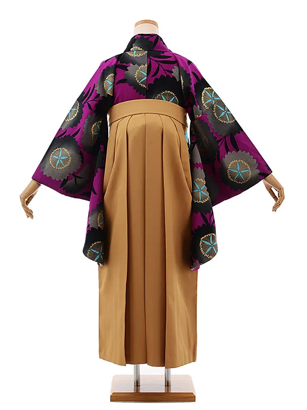 卒業式袴レンタルh451九重パープル黒花×からし色袴