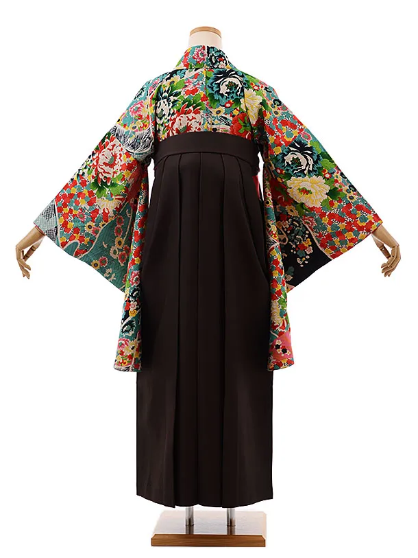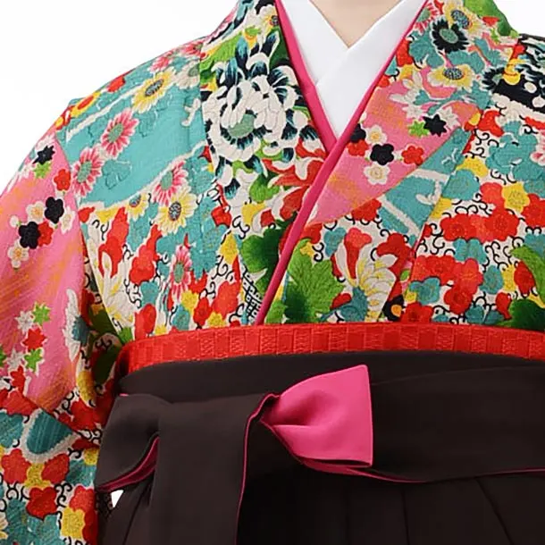 卒業式袴レンタルh453モダンアンテナターコイズ小花