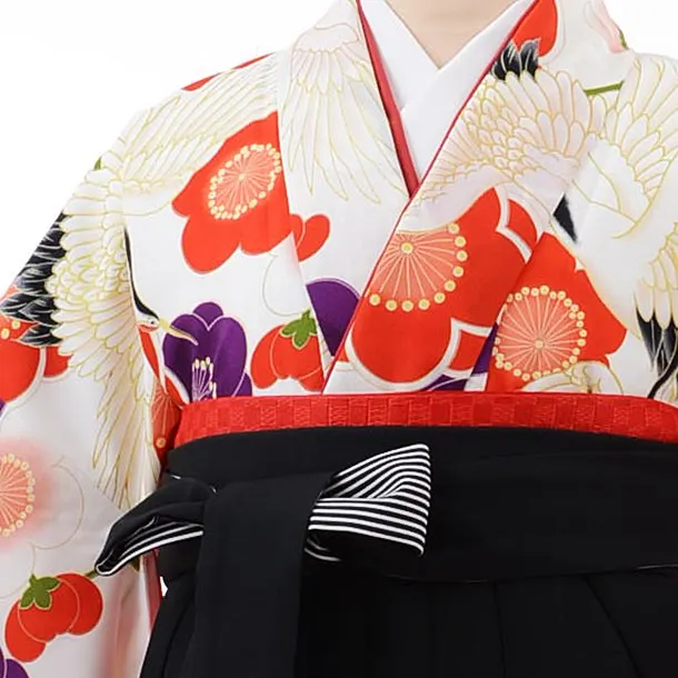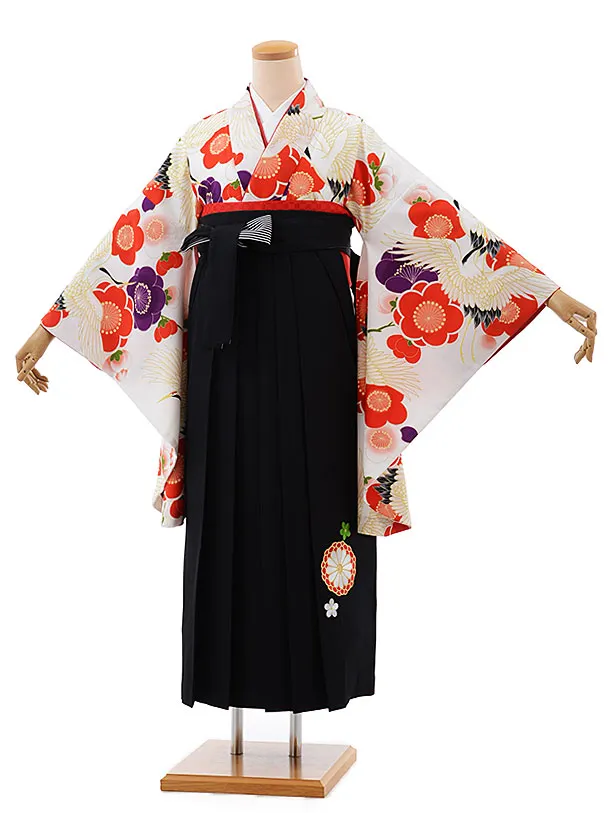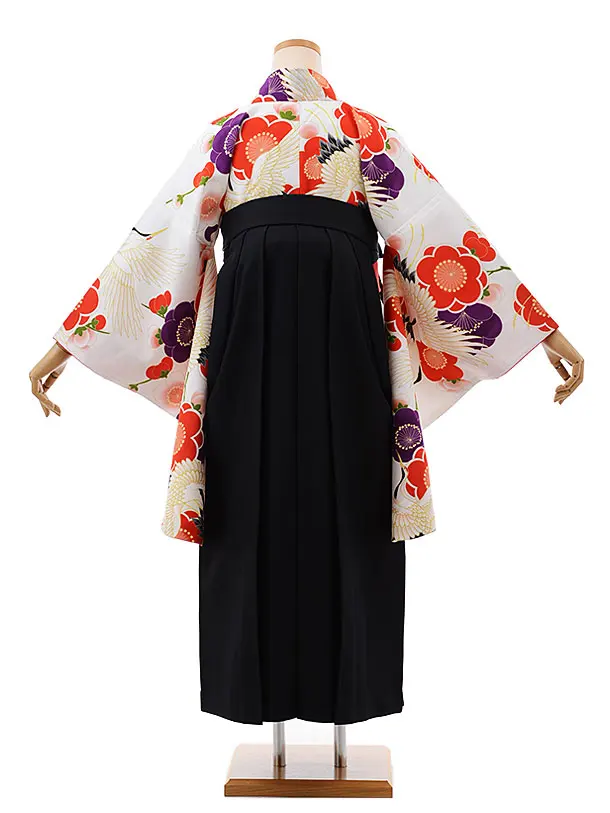 卒業式袴レンタルh457白地鶴梅×黒袴