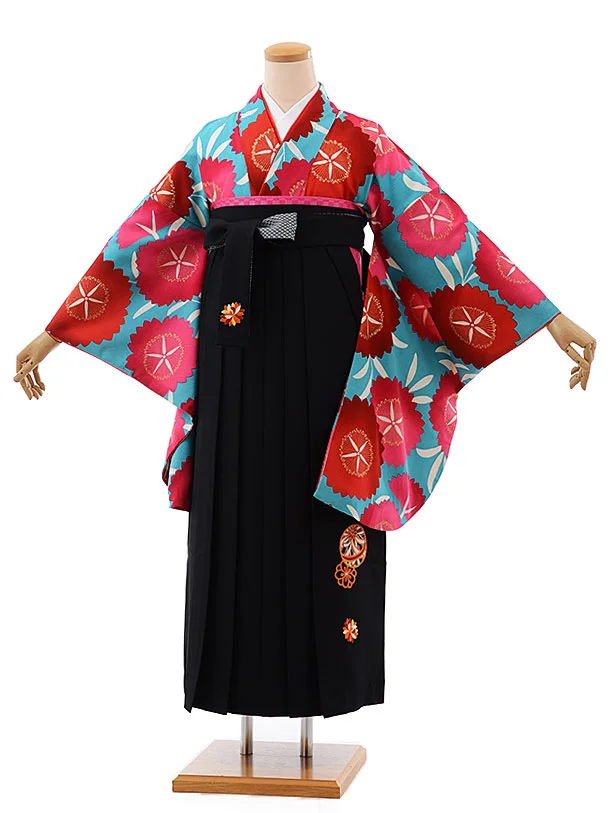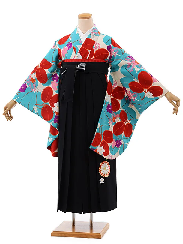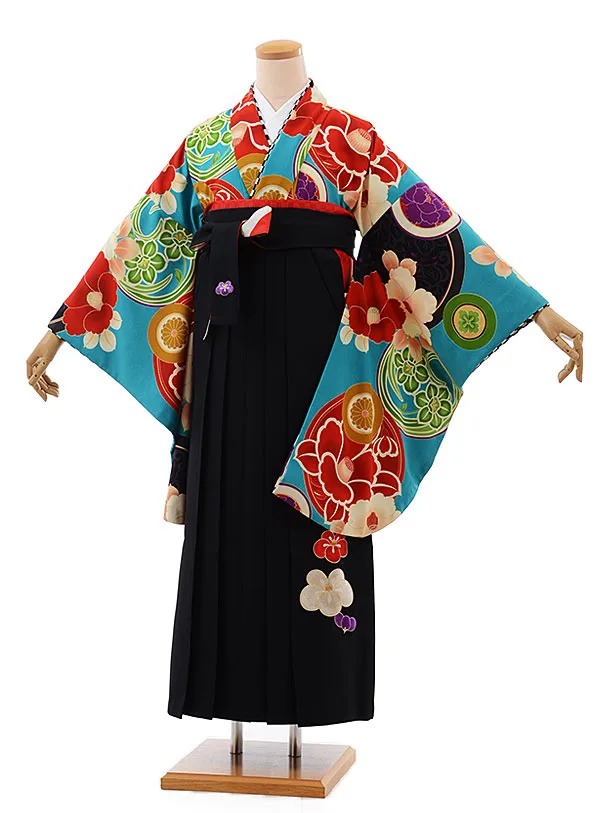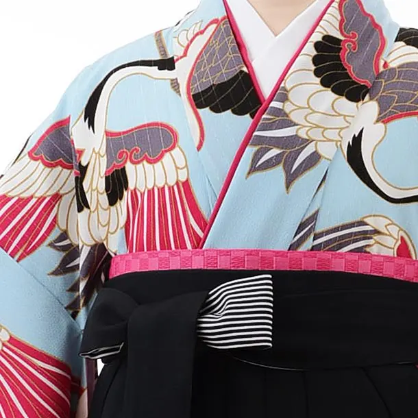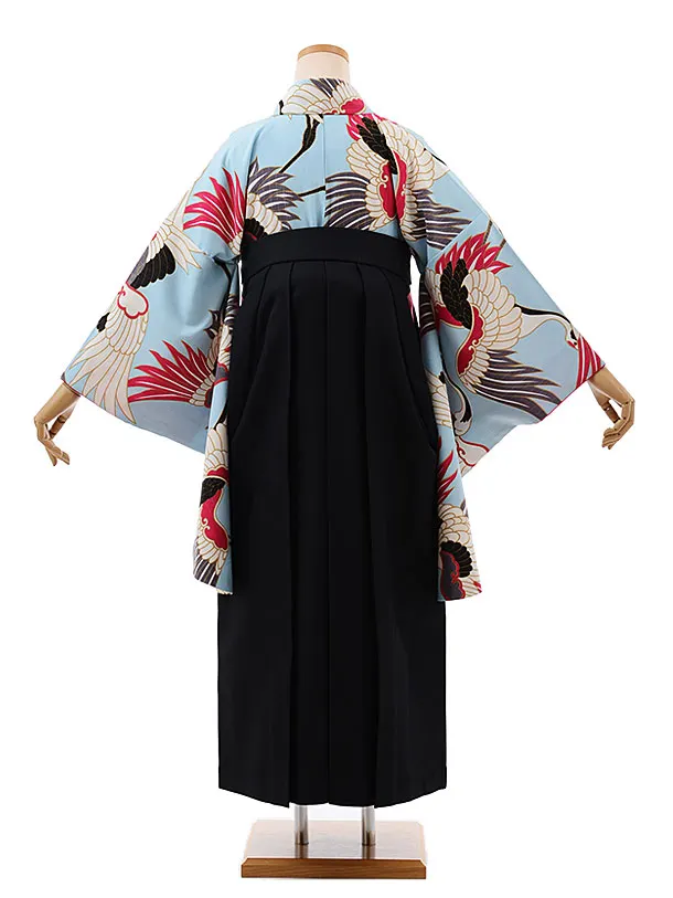 卒業式袴レンタルh458水色地鶴×黒袴