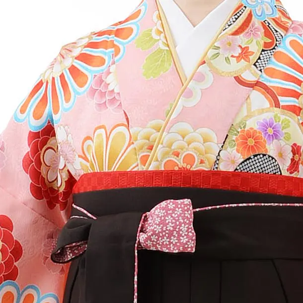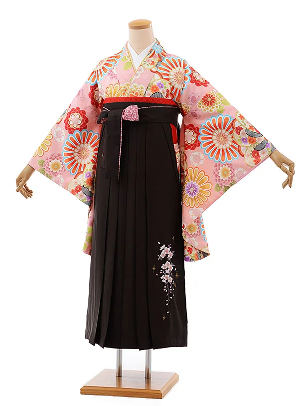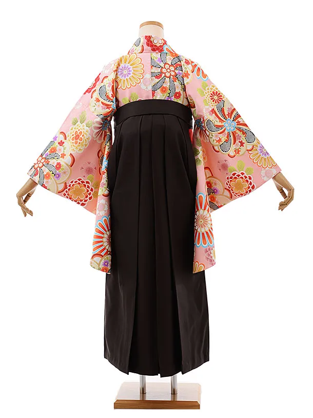 卒業式袴レンタルh459ピンク地梅菊×ブラウン袴