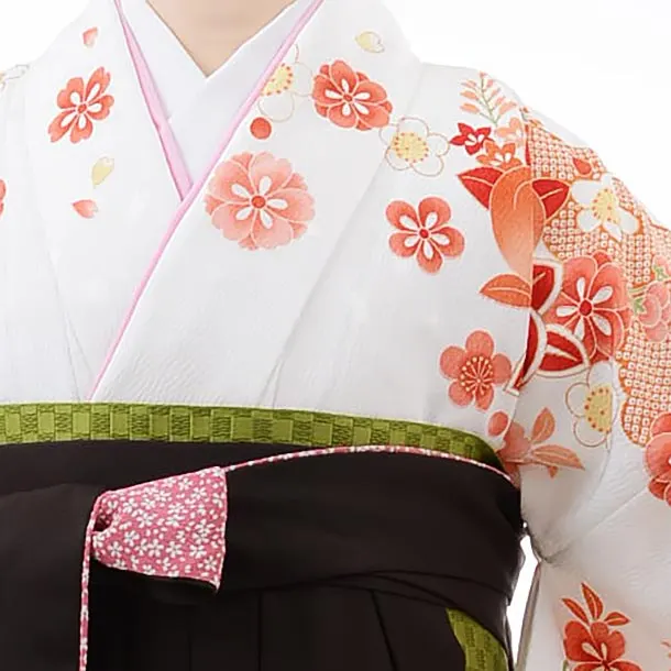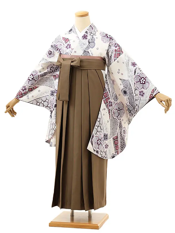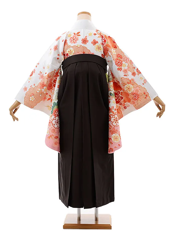 卒業式袴レンタルh461白地桜×ブラウン袴
