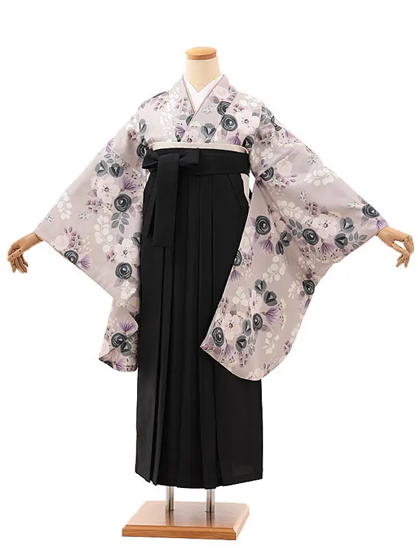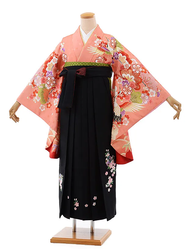 卒業式袴レンタルh462ピンク地梅鶴松×黒袴