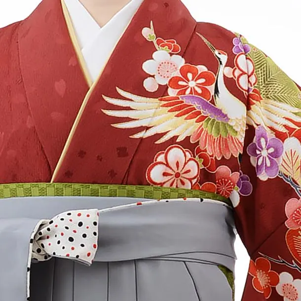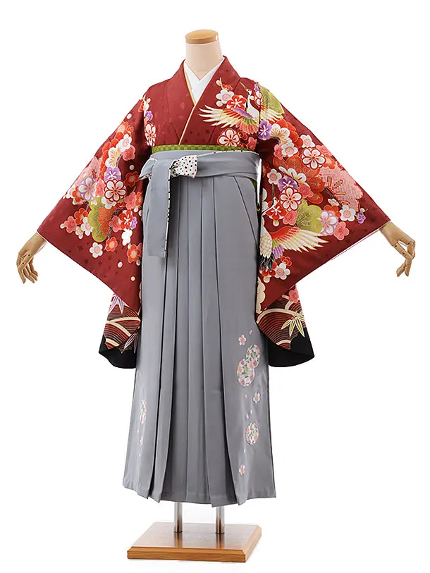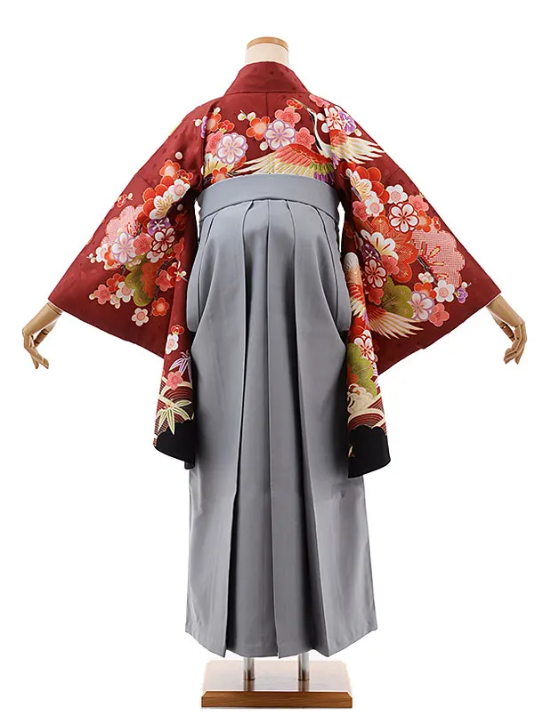 卒業式袴レンタルh465エンジ地松鶴×グレー袴
