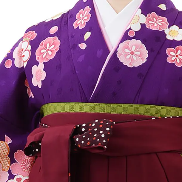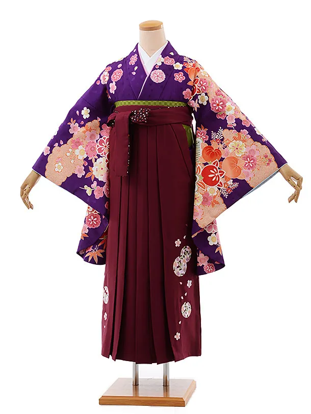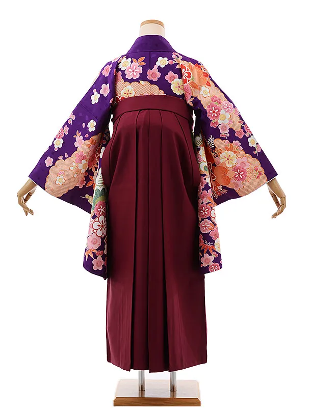 卒業式袴レンタルh468パープル地桜×エンジ袴
