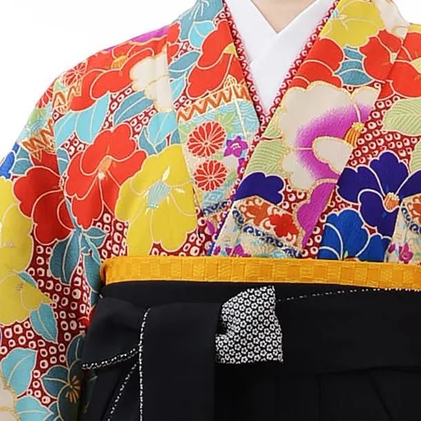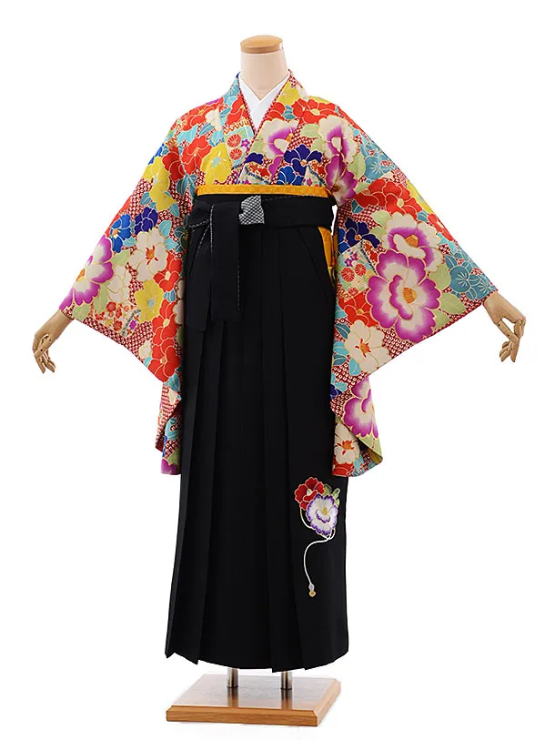卒業式袴レンタルh472KANSAI赤地疋田柄椿
