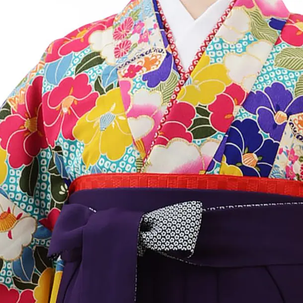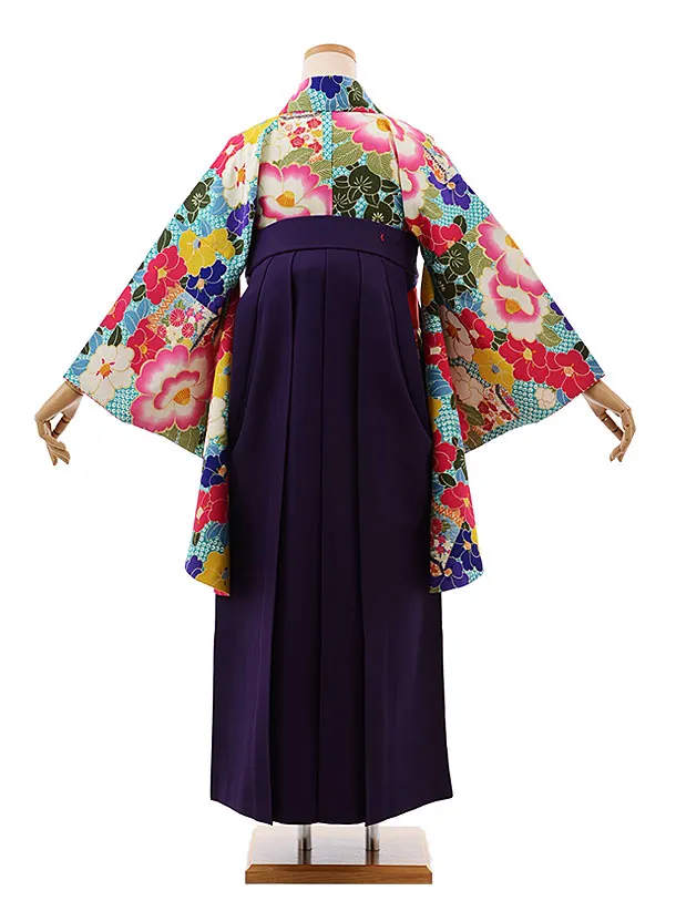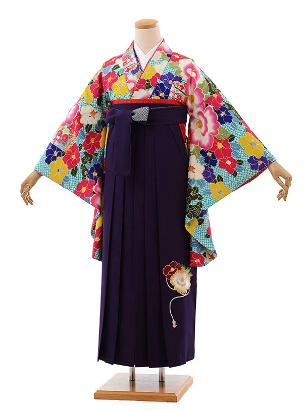 卒業式袴レンタルh473KANSAIターコイズ疋田柄椿
