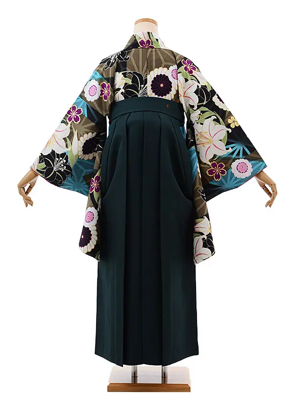 卒業式袴レンタルh474KANSAIカーキ色麻の葉百合
