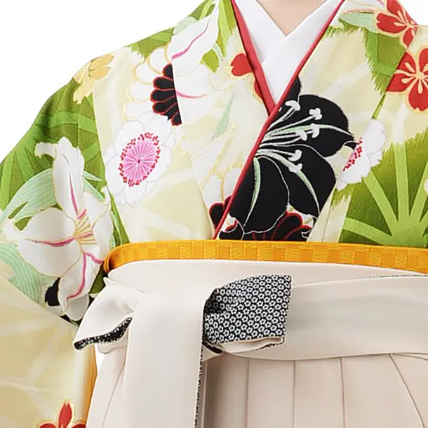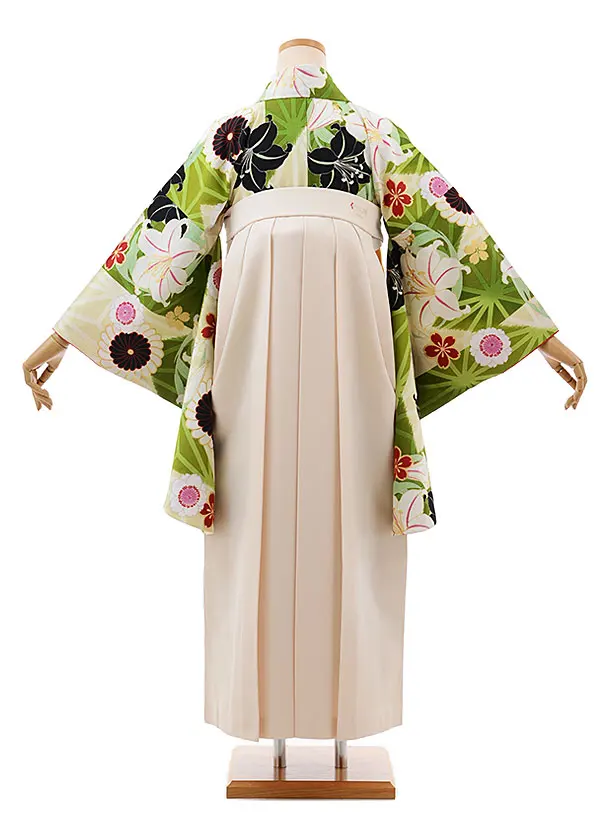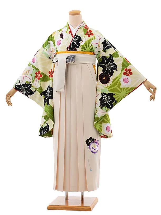 卒業式袴レンタルh476KANSAIグリーン地麻の葉百合