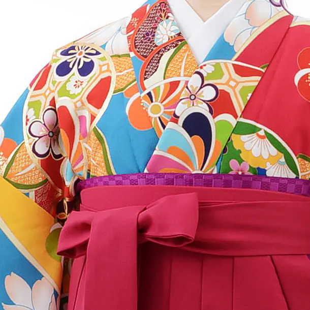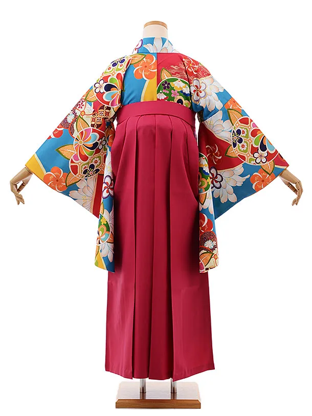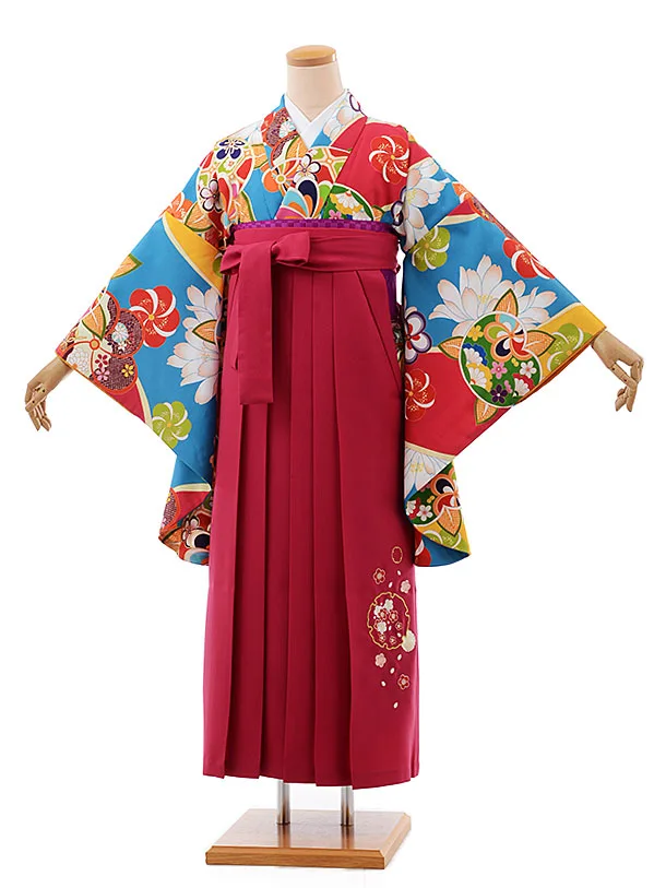 卒業式袴レンタルh485水色地橘に梅×ローズ袴