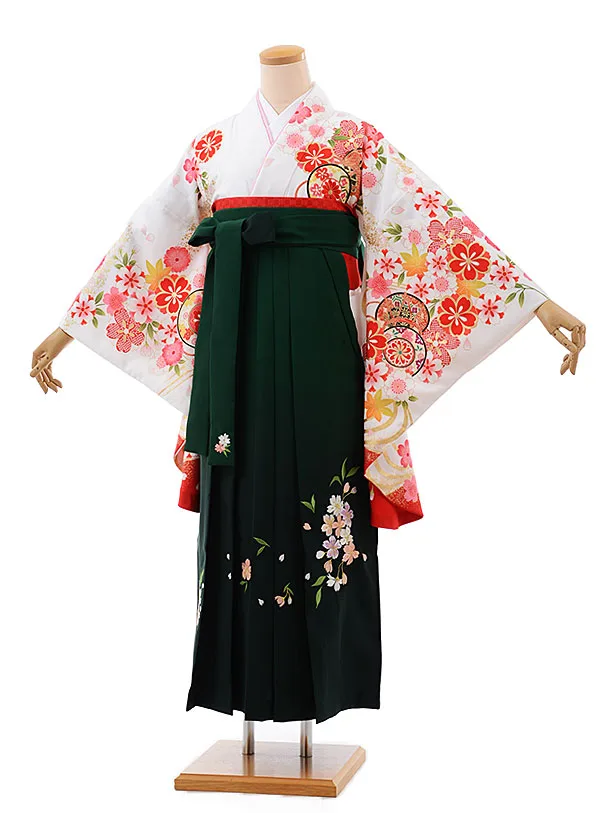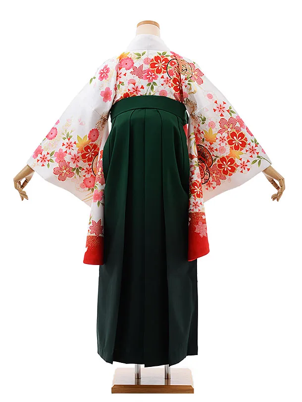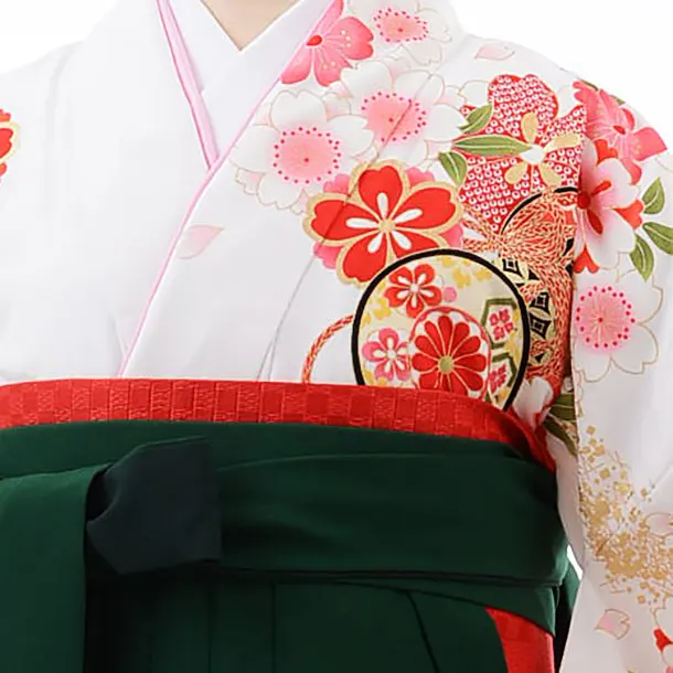 卒業式袴レンタルh496白地桜に鼓×グリーンぼかし袴