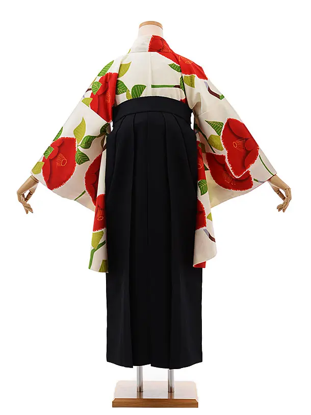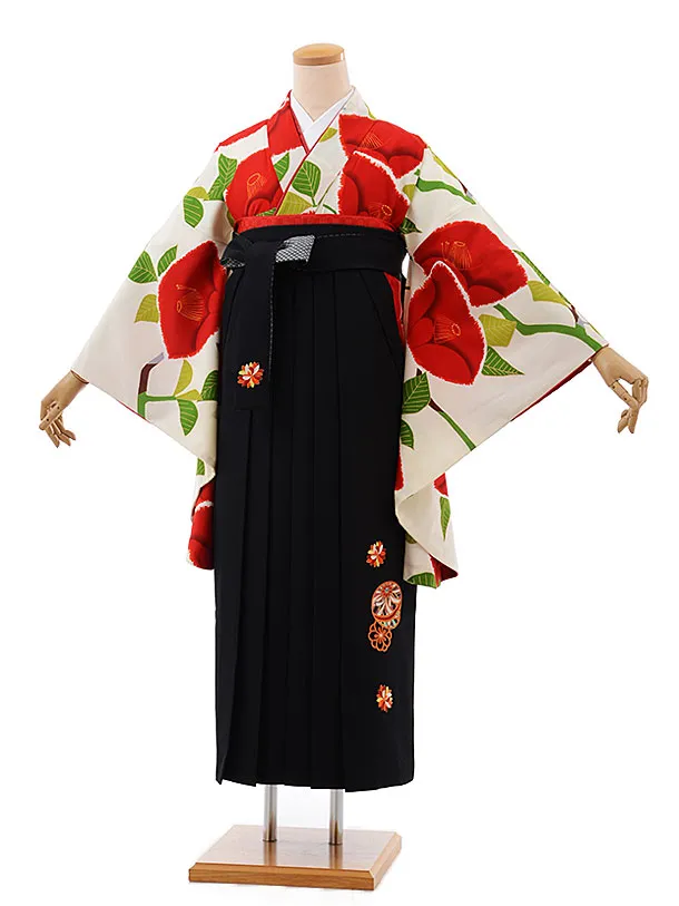 卒業式袴レンタルh502紅一点クリーム地赤椿×黒袴