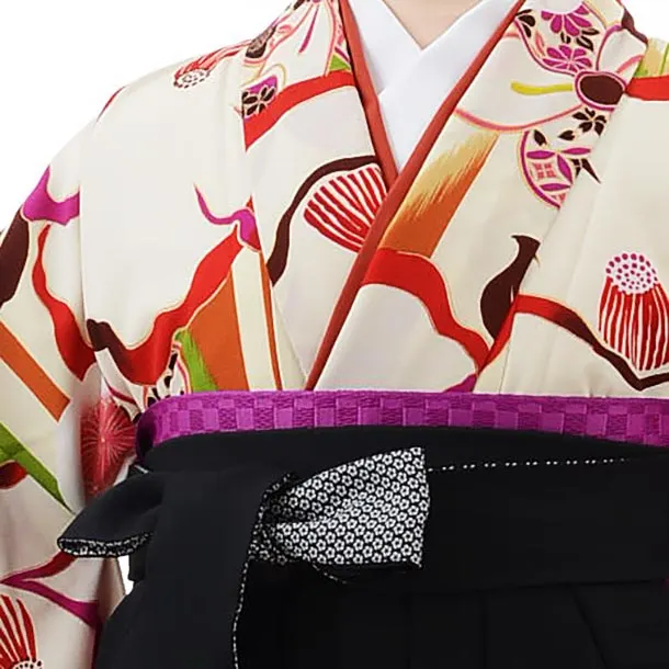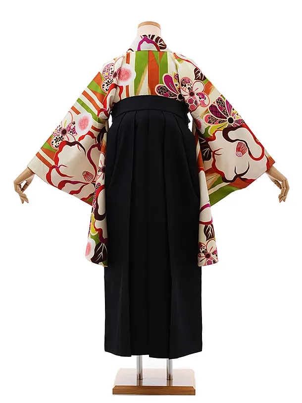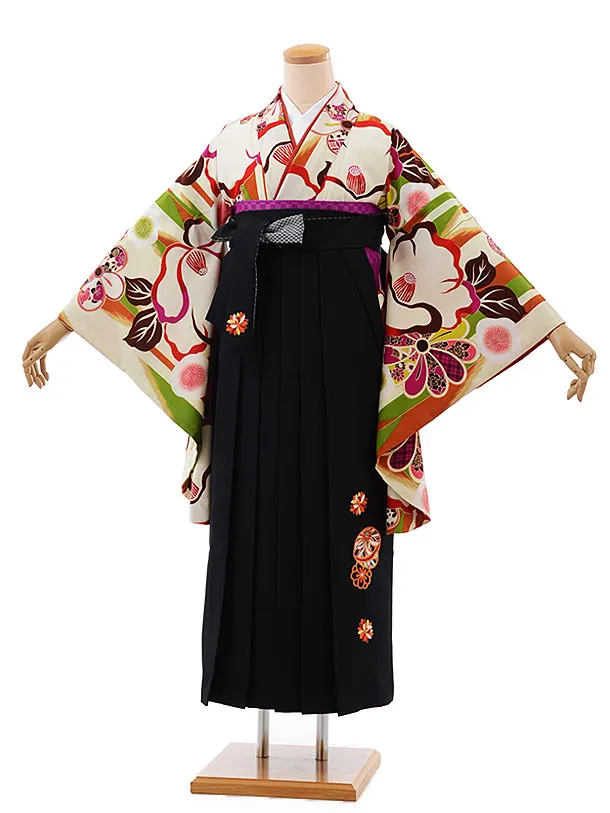 卒業式袴レンタルh505紅一点クリーム地椿×黒袴
