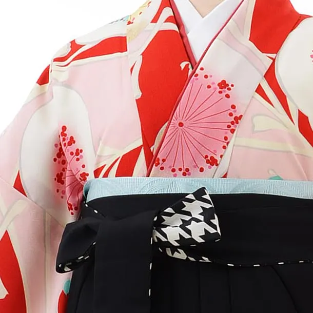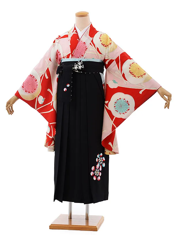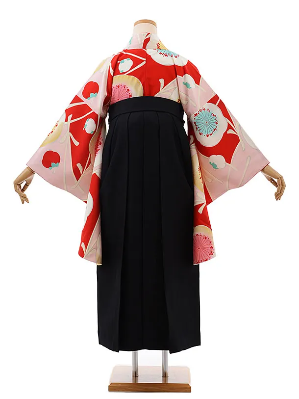 卒業式袴レンタルh521紅一点赤地梅×黒袴