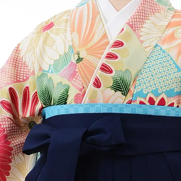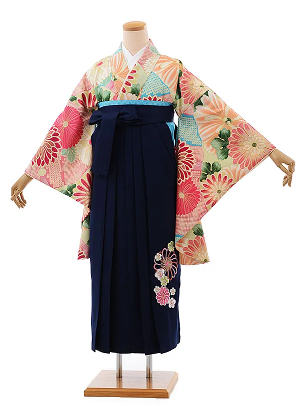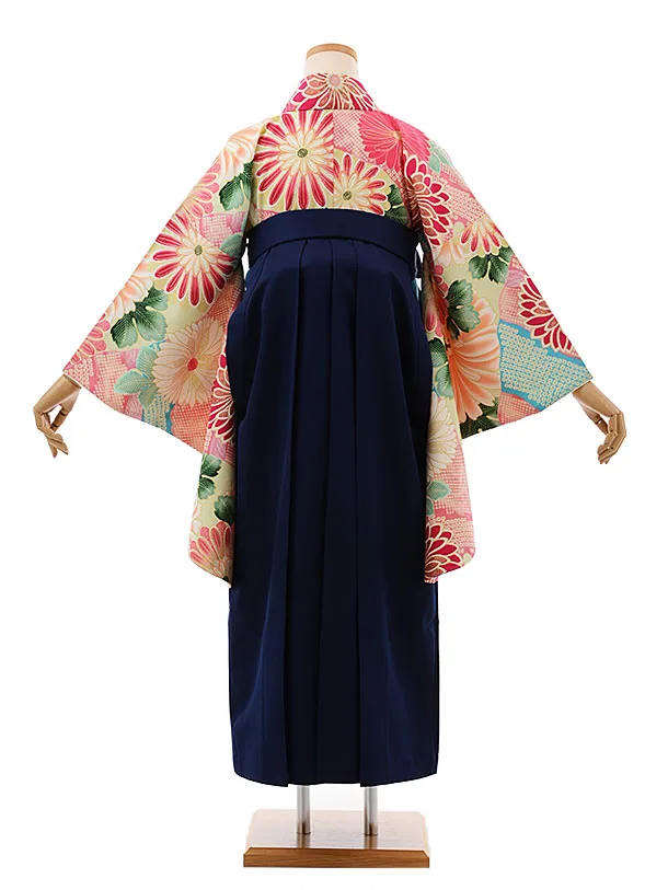 卒業式袴レンタルh524九重ピンク疋田柄菊×紺袴