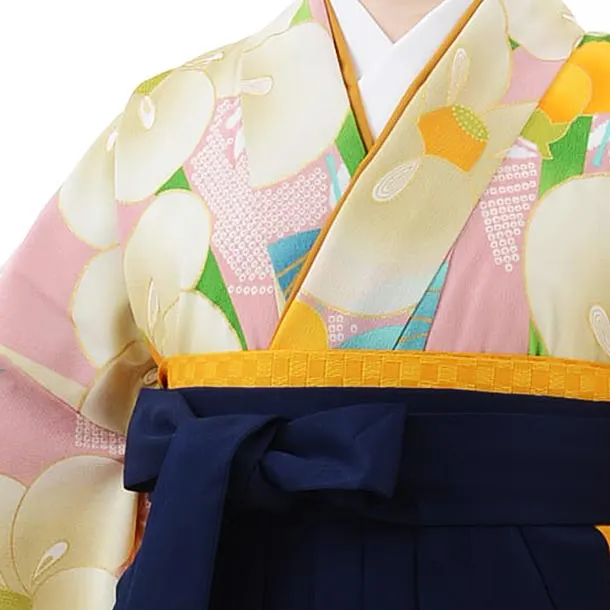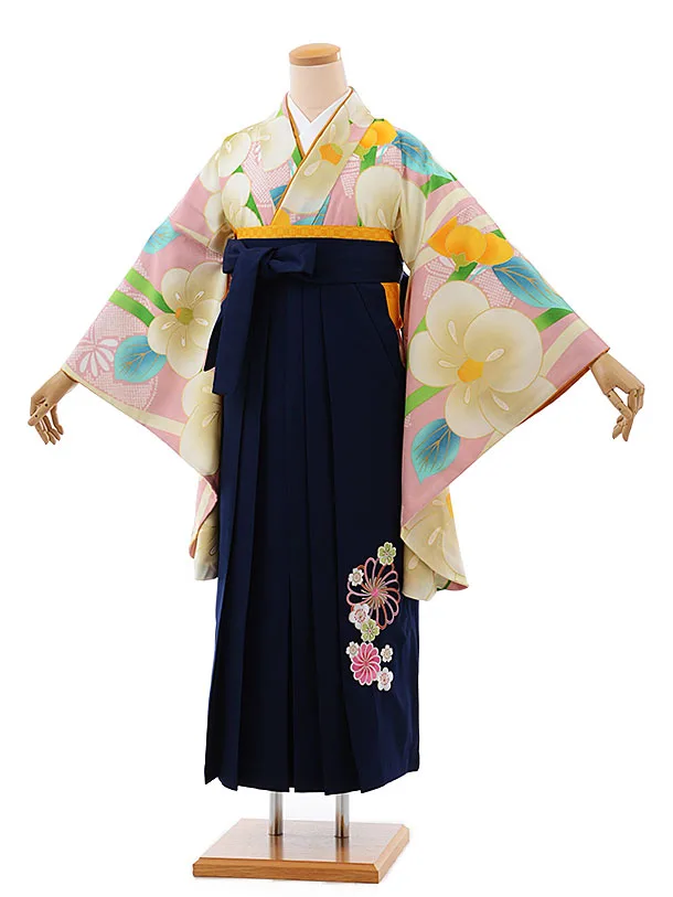 卒業式袴レンタルh526紅一点うすピンク椿×紺袴