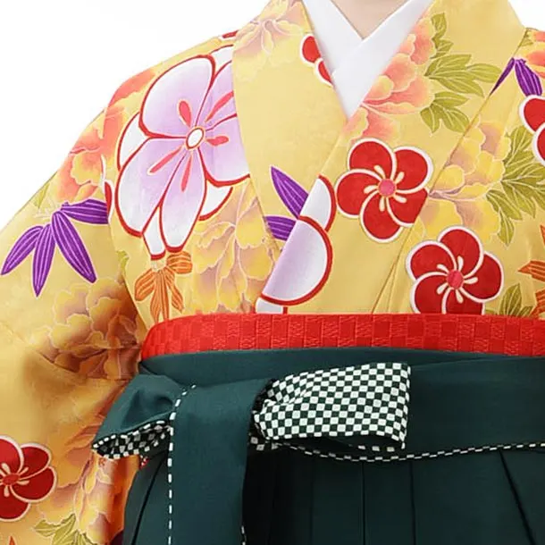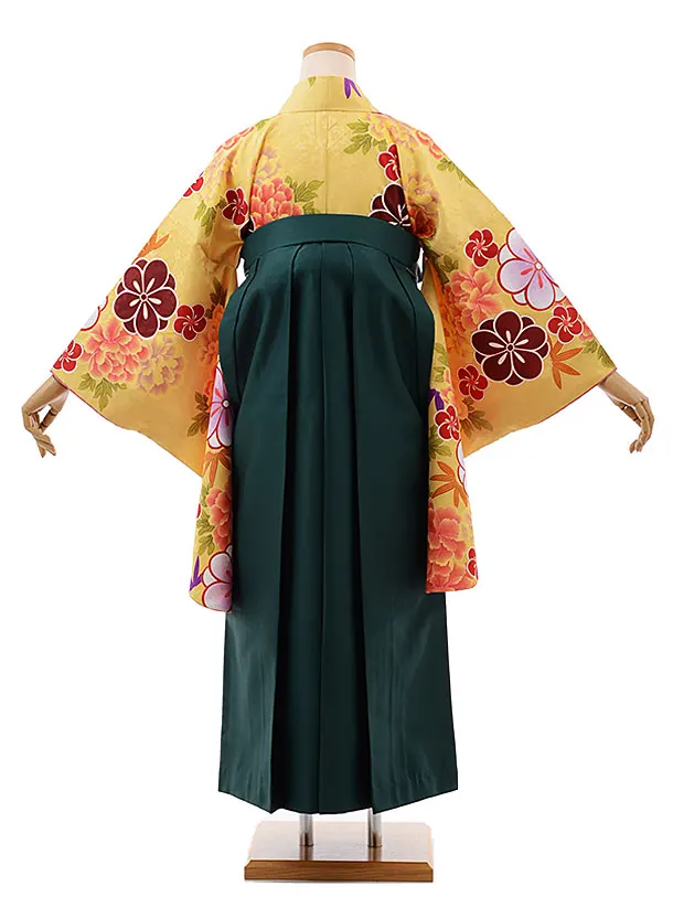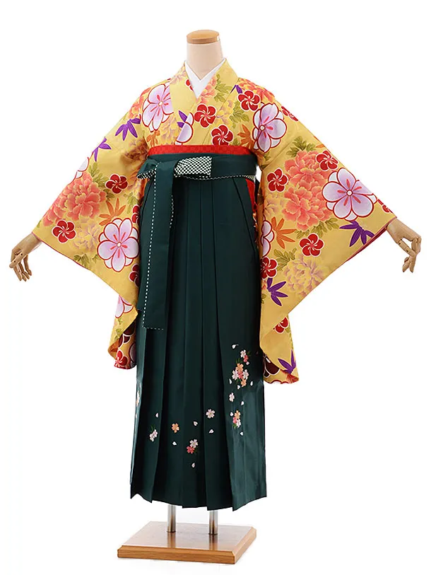 卒業式袴レンタルh531黄色地ぼたんxグリーン袴