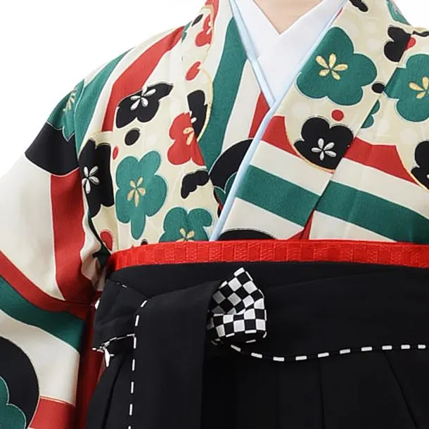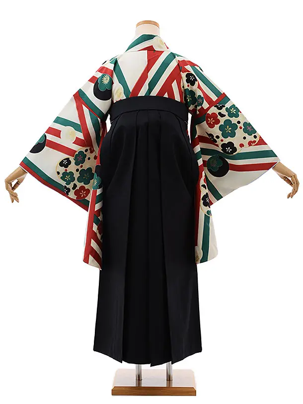 卒業式袴レンタルh534クリーム地赤緑梅x黒袴
