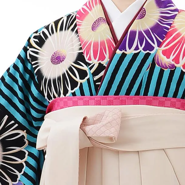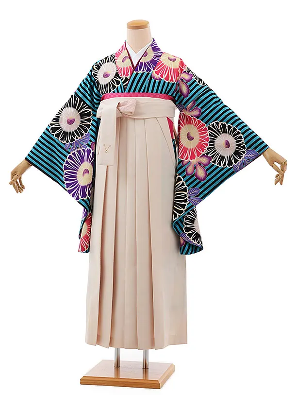 卒業式袴レンタルh541紅一点ブルーストライプ菊×白袴
