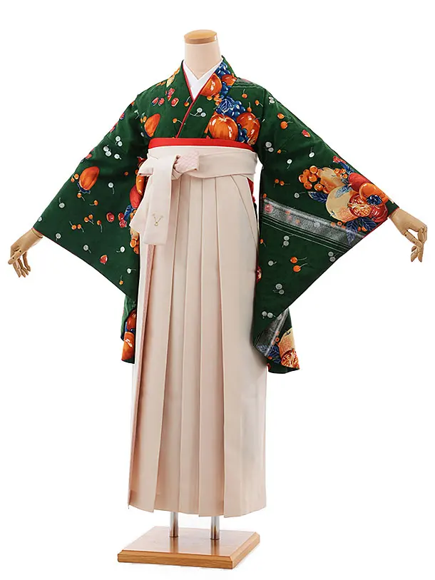 卒業式袴レンタルh542モダンアンテナグリーンフルーツ×白袴