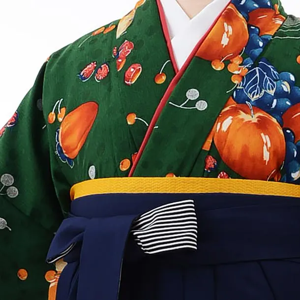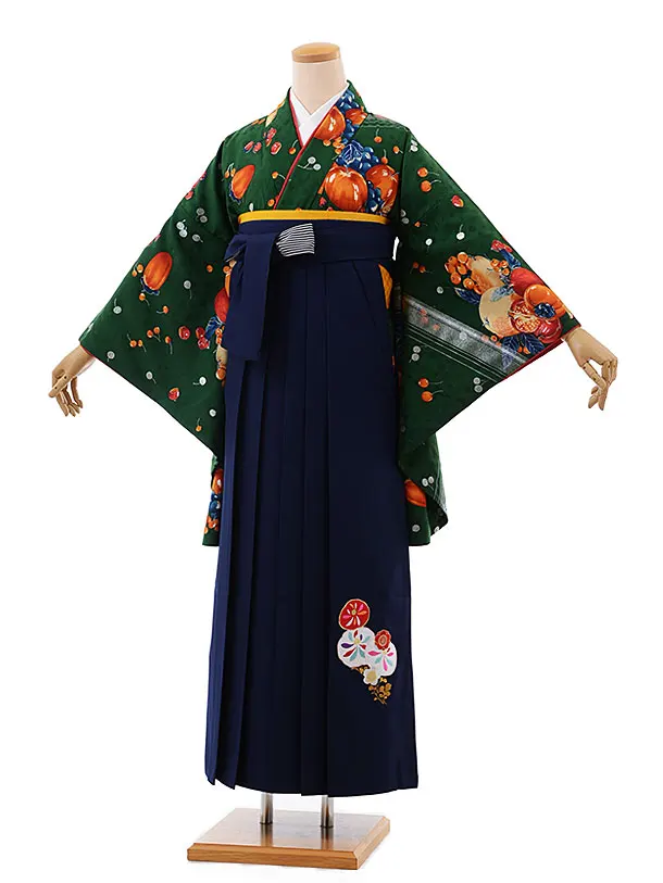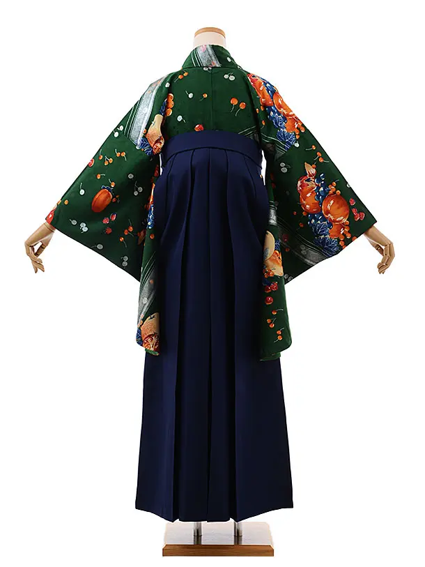卒業式袴レンタルh545モダンアンテナグリーンフルーツ×紺袴