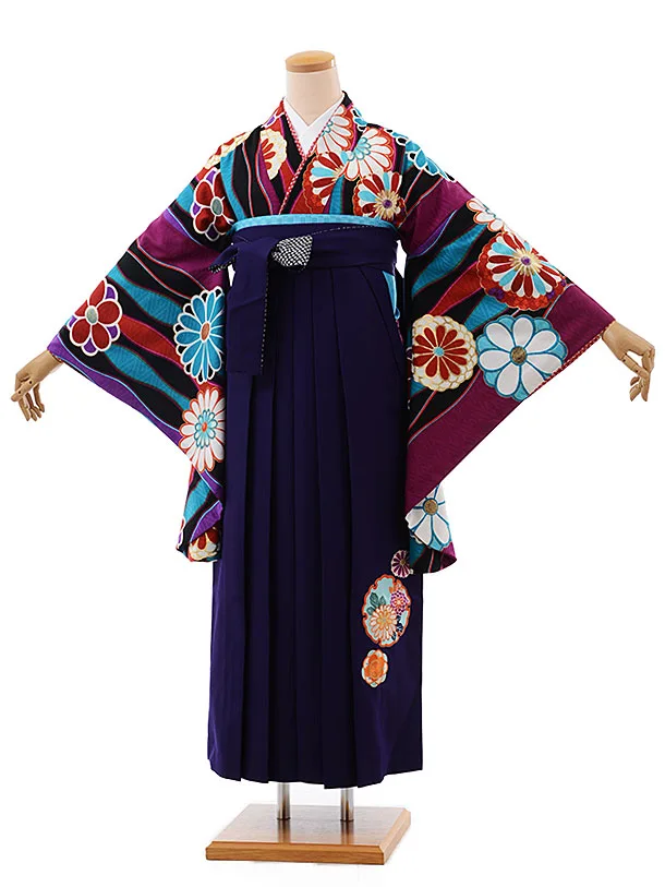 卒業式袴レンタルh547九重パープル菊×紫袴