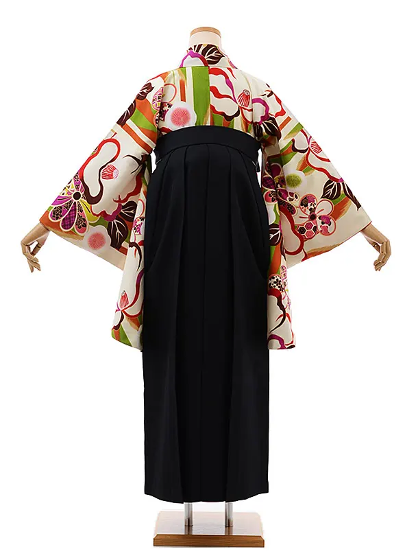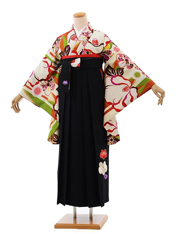 卒業式袴レンタルh549紅一点クリーム地椿×黒袴