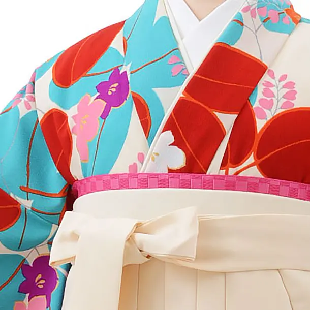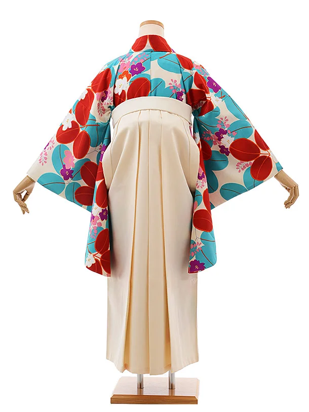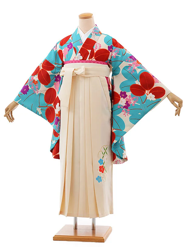 卒業式袴レンタルh555紅一点白地水色赤花×白袴