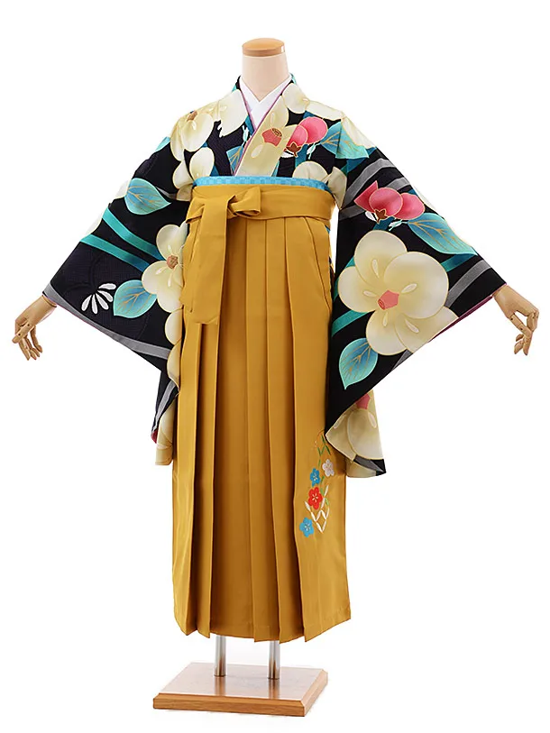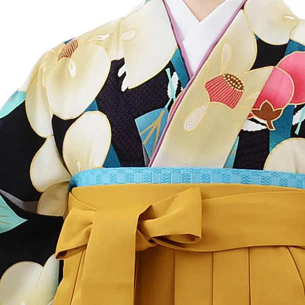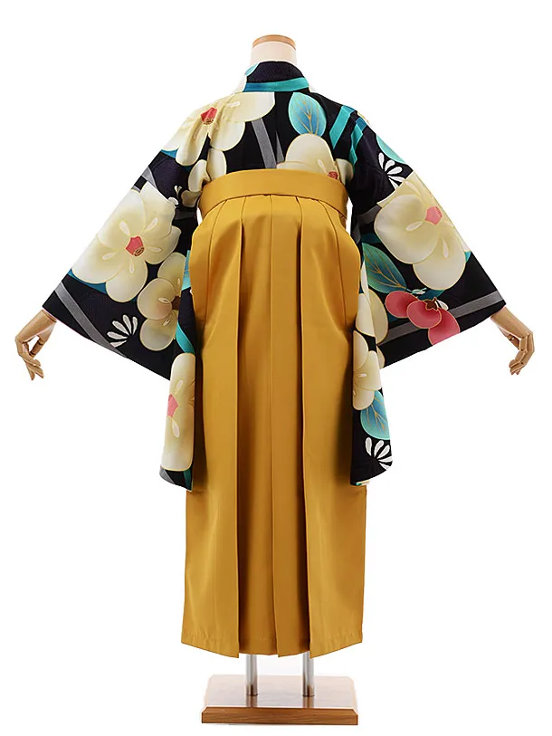 卒業式袴レンタルh558紅一点黒地椿×からし袴