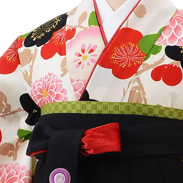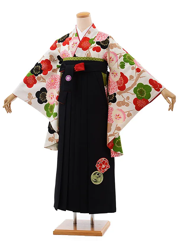 卒業式袴レンタルh560紅一点白地梅×黒袴