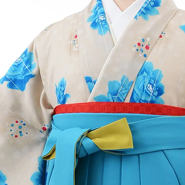 卒業式袴レンタルh568モダンアンテナグレージュバラ×ブルー袴