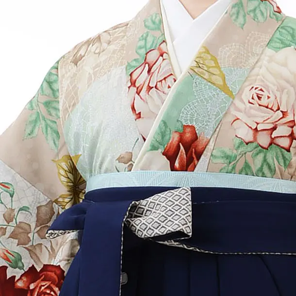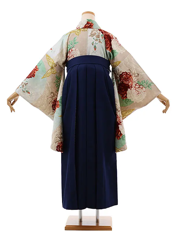 卒業式袴レンタルh571モダンアンテナベージュバラ×紺袴
