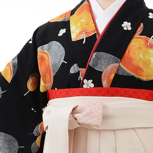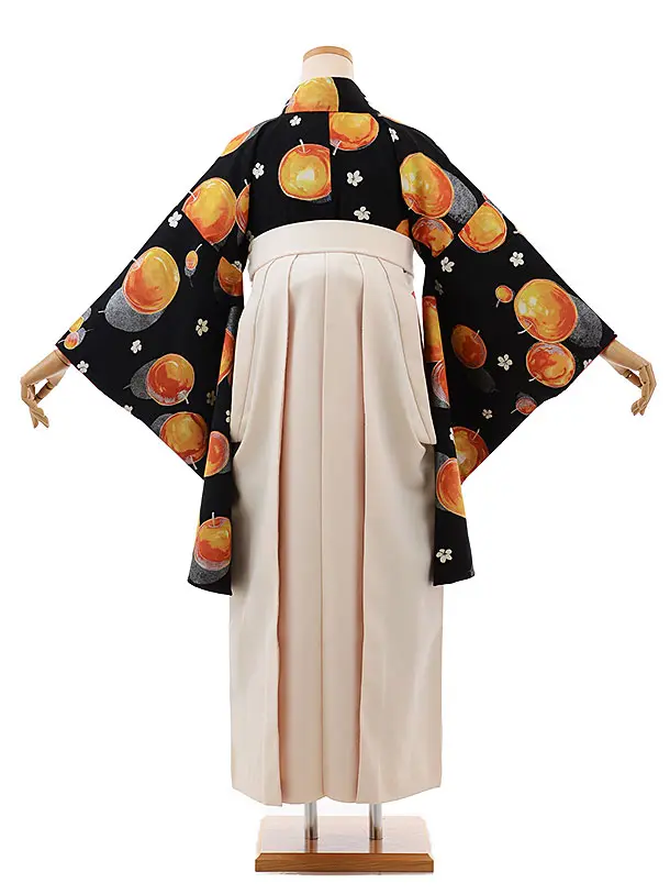 卒業式袴レンタルh577モダンアンテナ黒地りんご×白袴