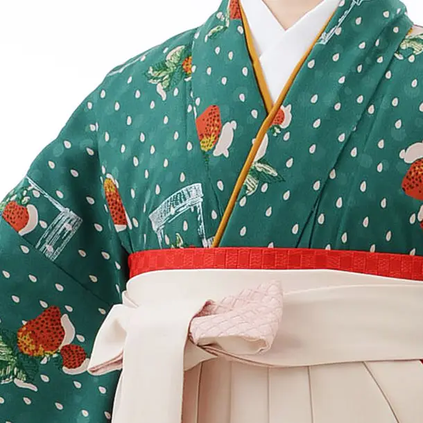 卒業式袴レンタルh581モダンアンテナグリーンいちご×白袴